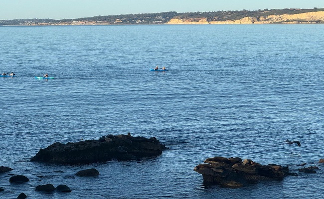 ఎటు చూసినా సీ గల్స్, పెలికాన్లు, ఒడ్డున బద్ధకంగా పడుకున్న సీల్స్. నేలమీద తాపీగా నడుస్తున్న సీగల్స్ను పట్టుకోవడానికి ప్రయత్నించే చిన్న పిల్లలు. సముద్రం స్థిమితంగా ఉండి, పెద్దగా సడి చేయడం లేదు. నీళ్ళలో లోతు తక్కువగా ఉన్న చోట కొంతమంది ఆనందంగా మునిగి తేలుతున్నారు.